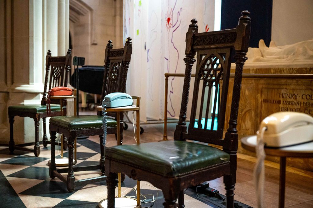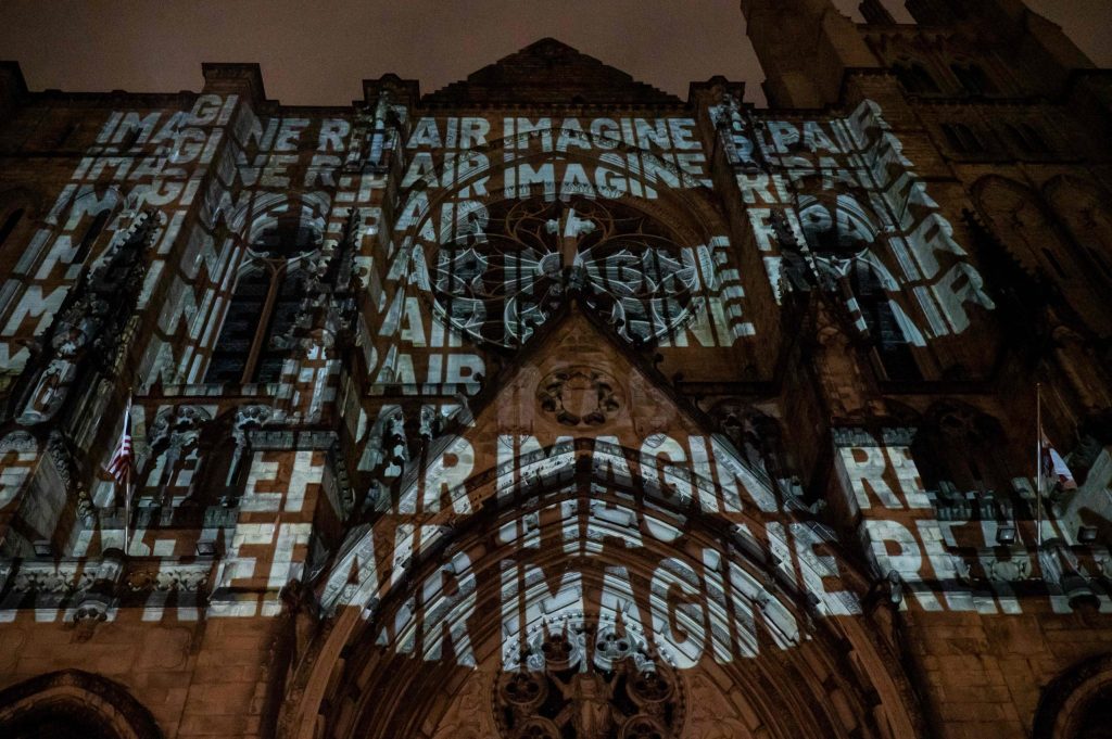 This community-based, public humanities project focused on memorializing the disproportionate effects of Covid-19 on black and brown neighborhoods in the Harlem, Washington Heights, and South Bronx zip codes of New York City. As a Project Fellow, I assisted with creative and performance workshops in these neighborhoods, and served as the Assistant Curator to Işın Önol on the final art exhibition, Imagine Repair, which opened at the Cathedral Church of St. John the Divine on April 23, 2022 and featured the works of local artists alongside more established names such as Rafael Lozano-Hemmer and Carrie Mae Weems. Below are selected artworks from the exhibition, which was covered in the following article in the New York Times.